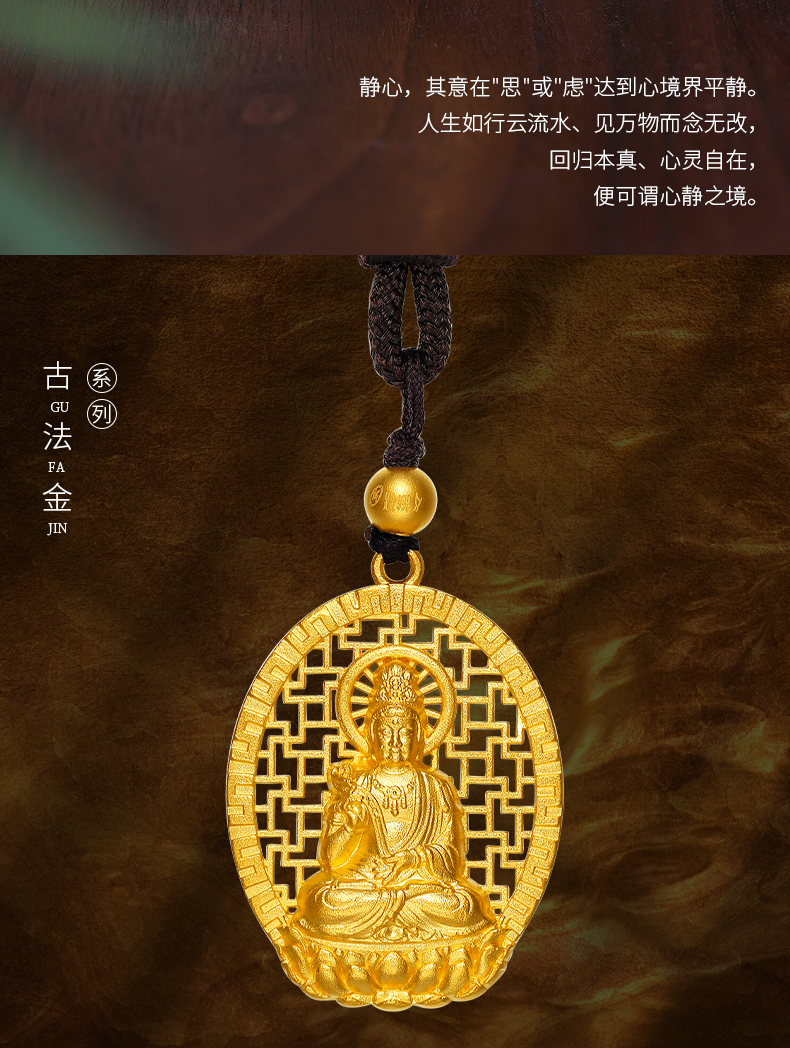周六福黄金吊坠男女兔年文殊菩萨本命佛计价古法金坠子圣诞礼物 5.3g