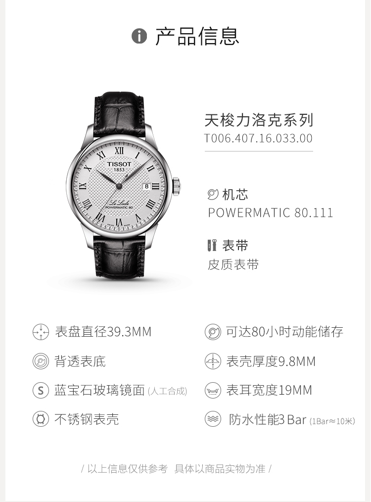 天梭力洛克系列T006.407.16.033.00腕表